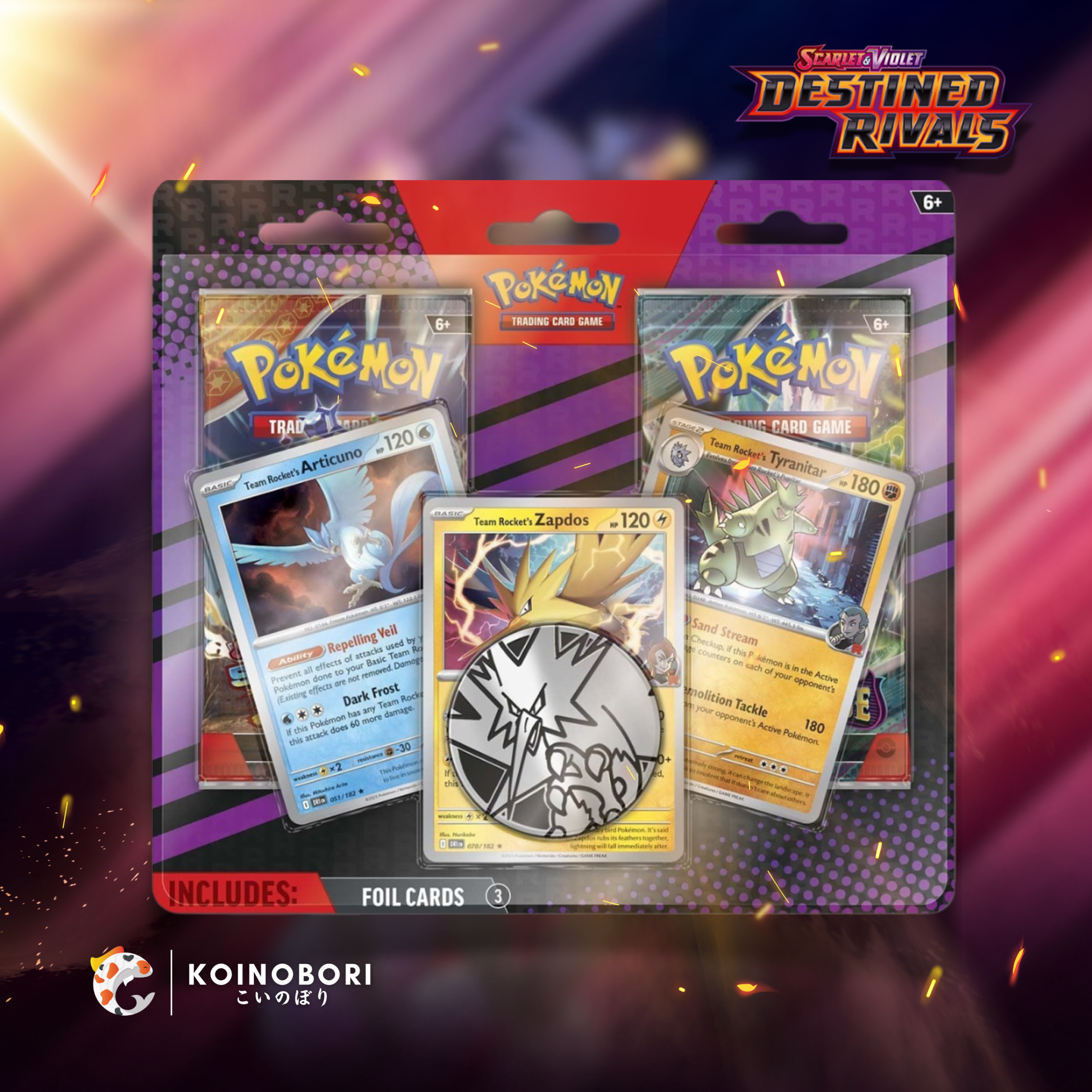 Este Blíster de la expansión Team Rocket, y contiene 2 sobres de 10 cartas originales al azar en idioma inglés, tres cartas promocionales y una moneda. ¡Desde cartas comunes hasta las ultra raras de arte alternativo, pueden salirte montones de Pókemones diferentes para jugar, intercambiar o coleccionar!