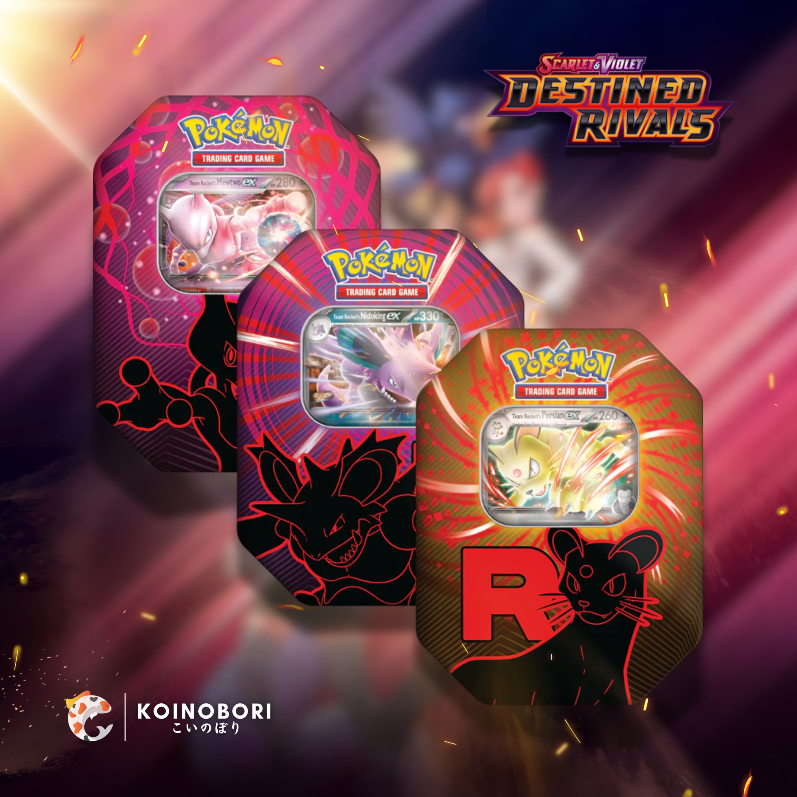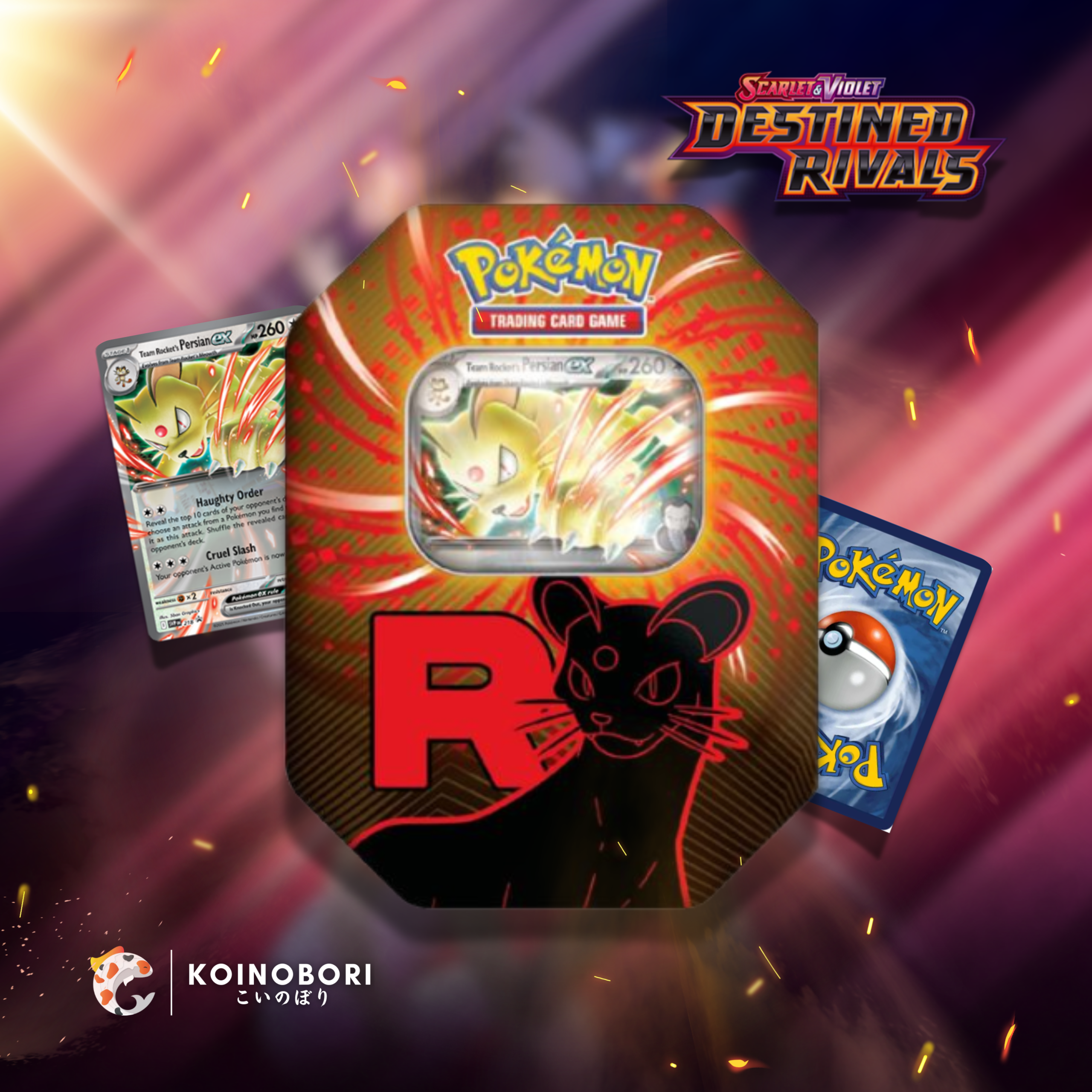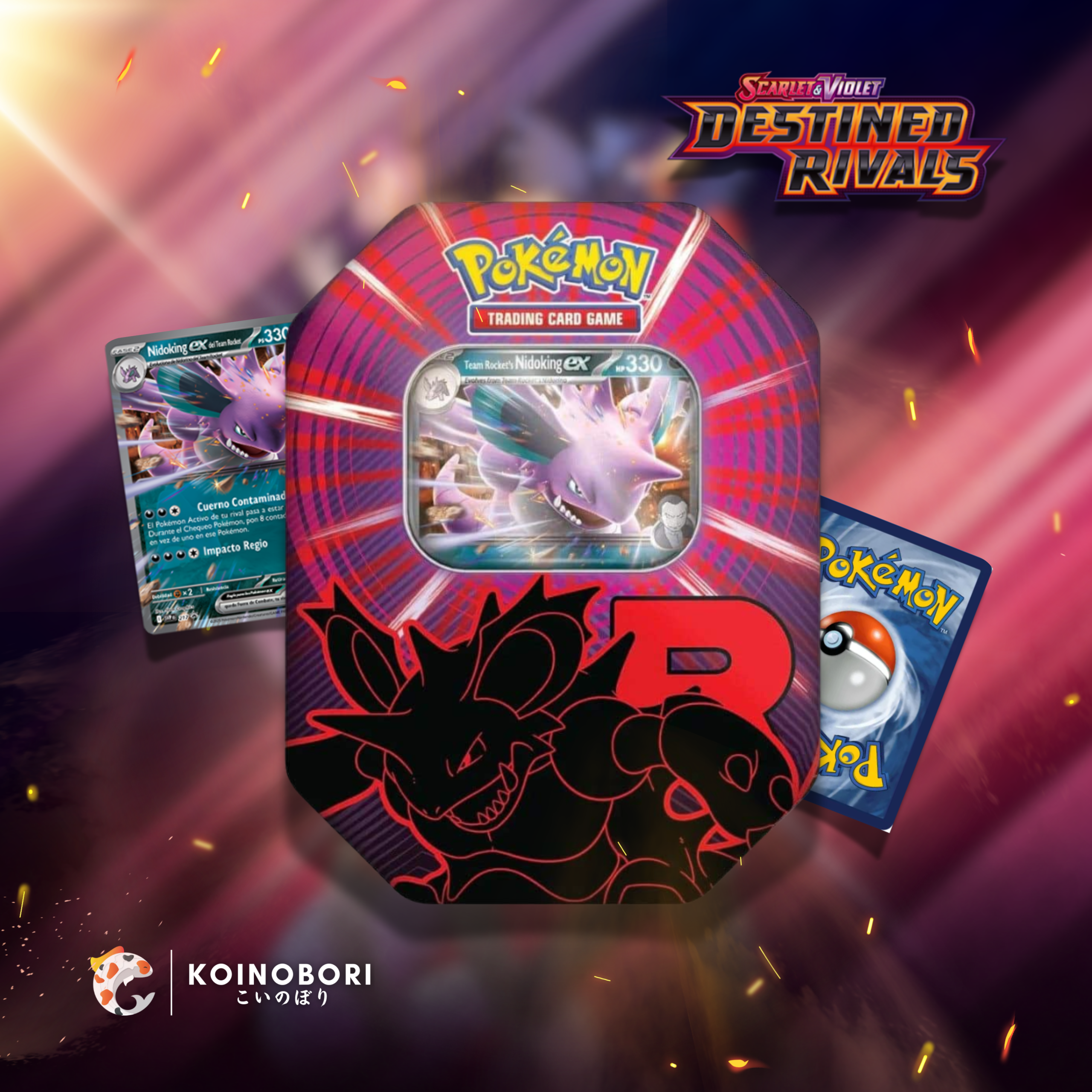 ¡Ejecuta tus ambiciosos planes con la ayuda de algunos de los Pokémon más poderosos del Team Rocket! Con este tin, podrás escoger entre la mente estratégica de Mewtwo ex del Team Rocket, las potentes toxinas de Nidoking ex del Team Rocket o el soberbio poder de Persian ex del Team Rocket, que llegan en forma de cartas holográficas de promoción.