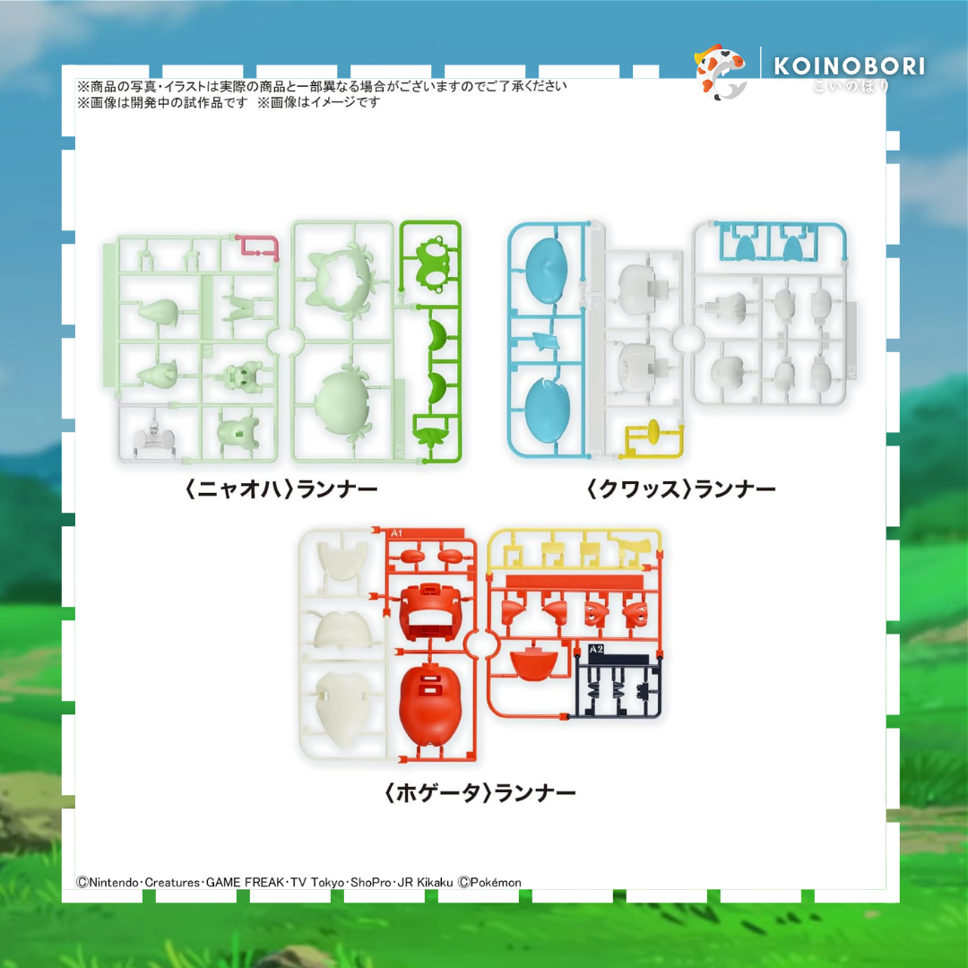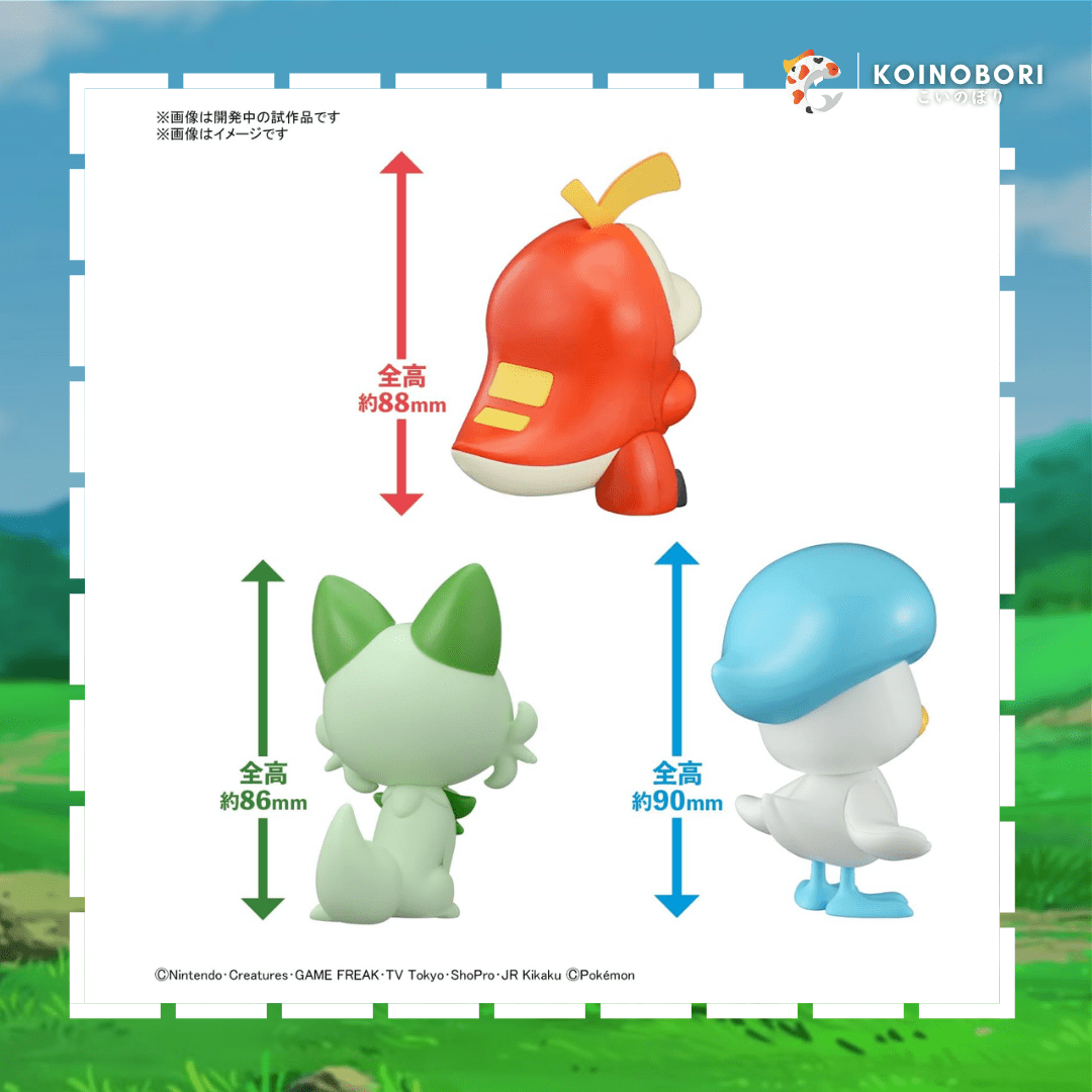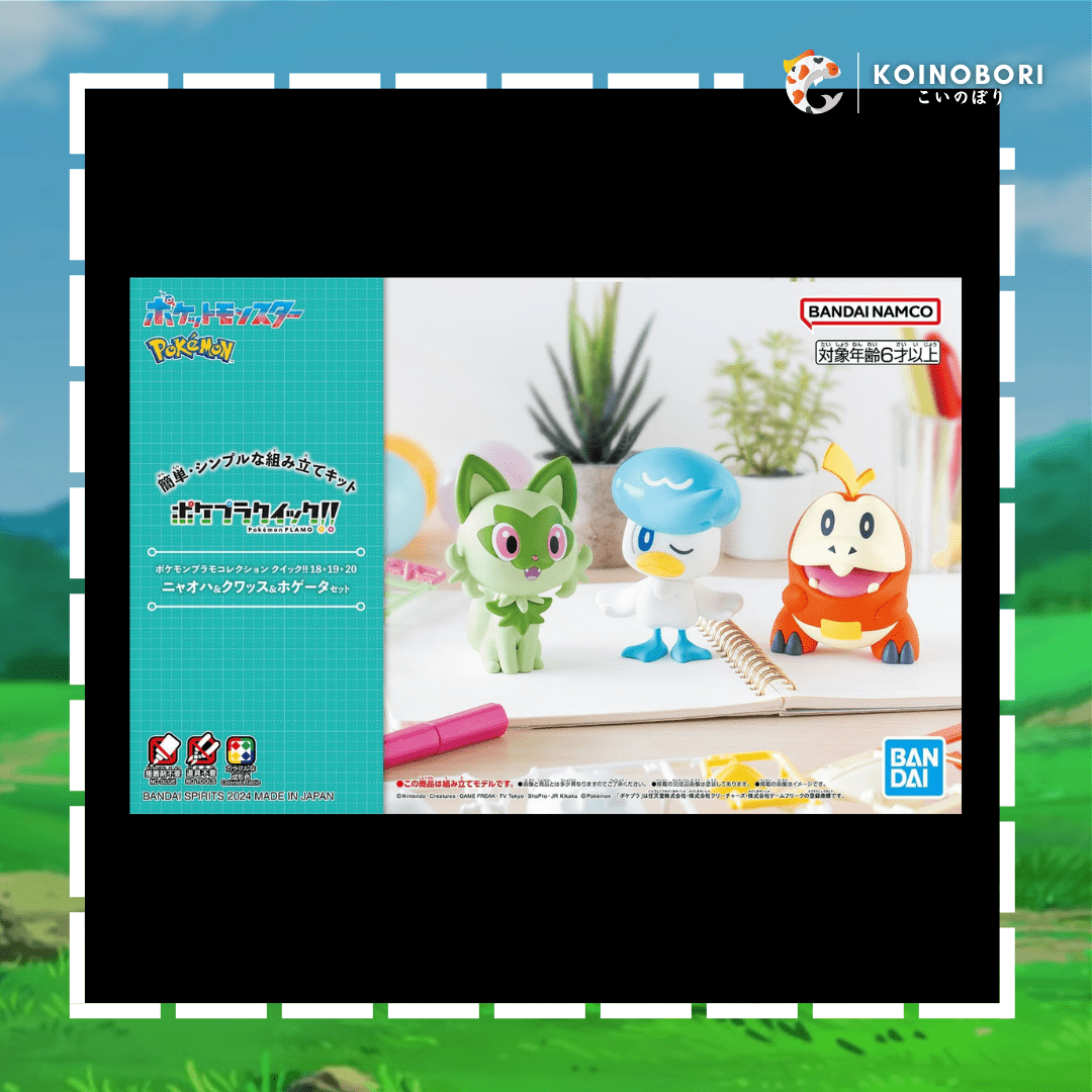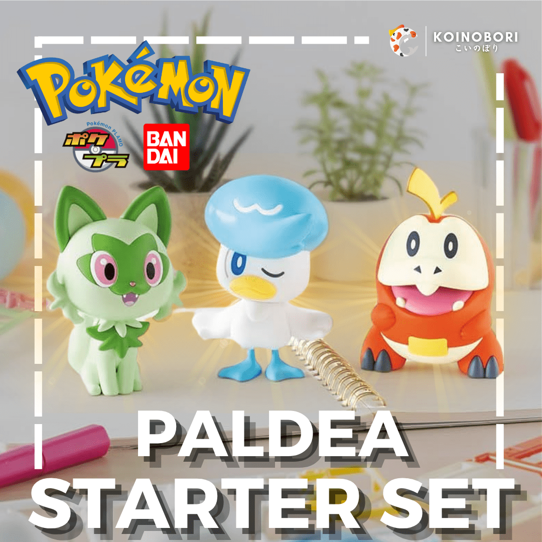 ¡Este Pokemon model kit set de los 3 Pokemon iniciales de la región de Paldea: Sprigatito, Quaxly y Fuecoco, importado desde Japón, es un producto original de BANDAI y se entrega completamente nuevo y sellado!