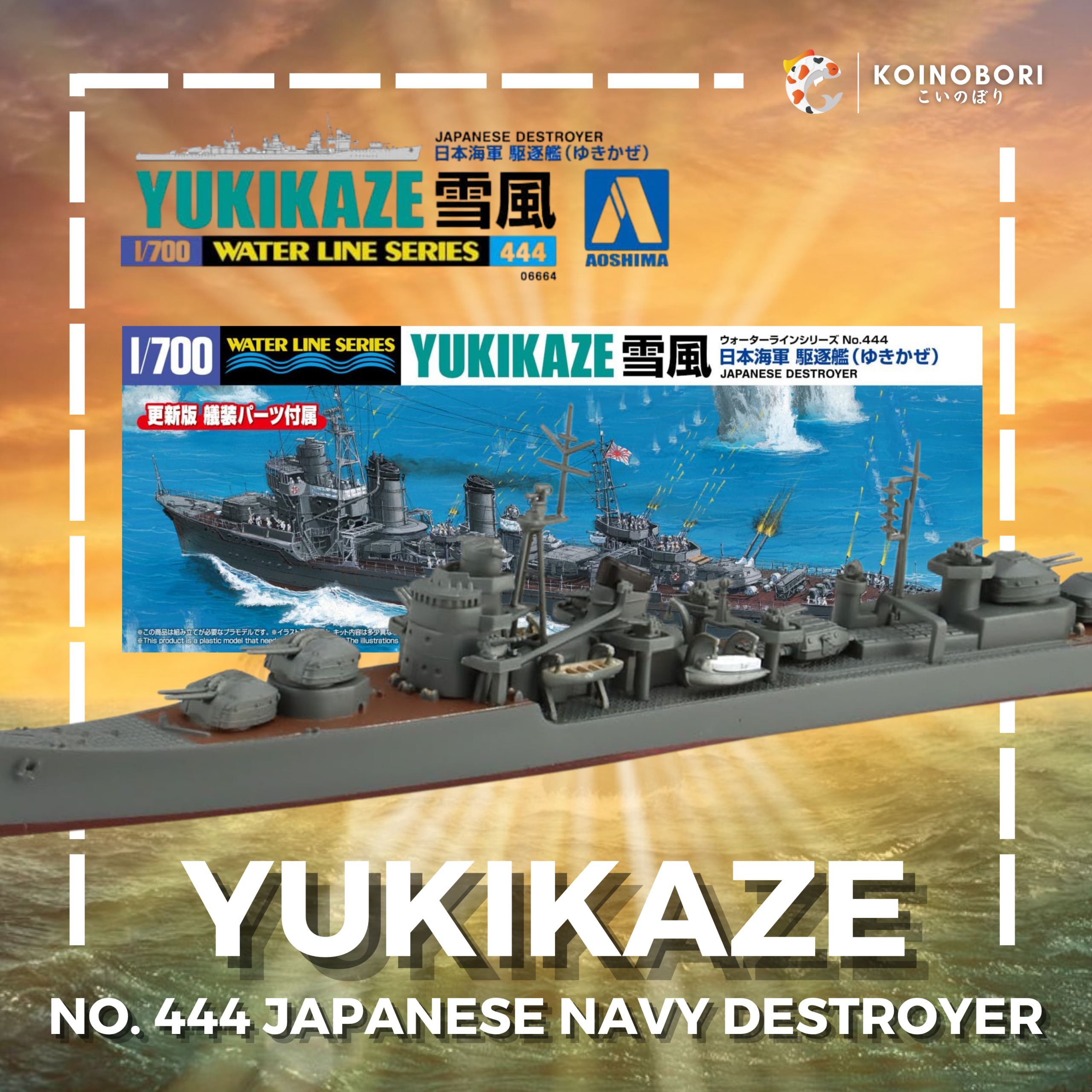 Este model kit, de la compañía japonesa Aoshima, representa al Yukikaze (雪風, “Viento de Nieve”) un destructor de la clase Kagerō de la Marina Imperial Japonesa, único destructor de su clase que sobrevivió a la guerra intacto, ganándose los apodos de “El destructor milagroso” y “La nave insumergible”. Representado en escala 1:700, cuenta con una forma simplificada de armado con moldes deslizantes (ideal tanto para veteranos como para nuevos en el hobby del armado de model kits), y códigos sugeridos para pintarlo y que parezca su versión original de altamar. ¡Diviértete coleccionando la flota japonesa o las diferentes flotas del mundo con estos precisos sets japoneses!